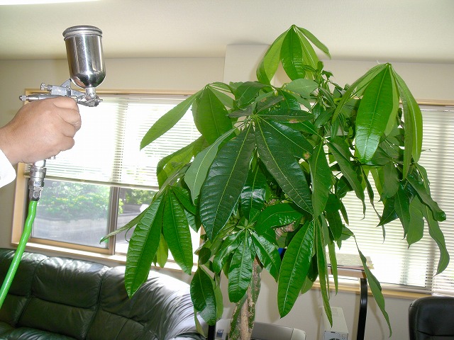 事務所内の観葉植物、リビングの観葉植物に光触媒溶液をコーティングするだけで、臭いを分解除去・有機性有害物質(VOC)の分解除去・空気の浄化が
