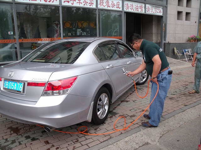 施工が終わり、一呼吸してると近くの人民が寄ってきて、この車はよく光っていると、言ってびっくりしていた。