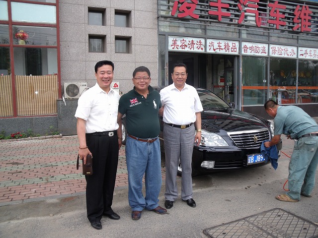 洗車場の、社長、及び大連で大きな会社を経営したある社長3人で記念撮影