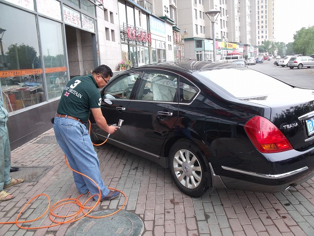 社長みずから、車の光触媒の練習をしている、光景です本人いわくうまいとのことです、自己満足